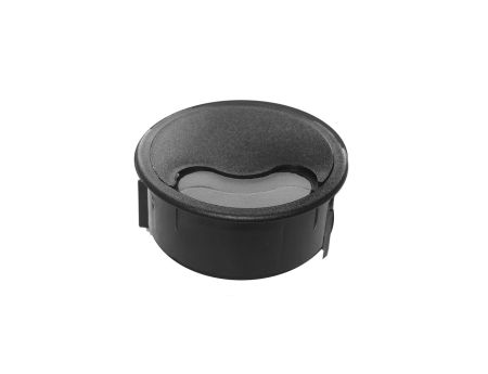 This 5" specialty grommet has several features not available in our standard round grommets. It has an attached swivel lid that actually screws into place - designed to eliminate lost covers. The main housing mechanically attaches to a panel with a clamping system which eliminates a grommet from ever being pulled away from its opening.